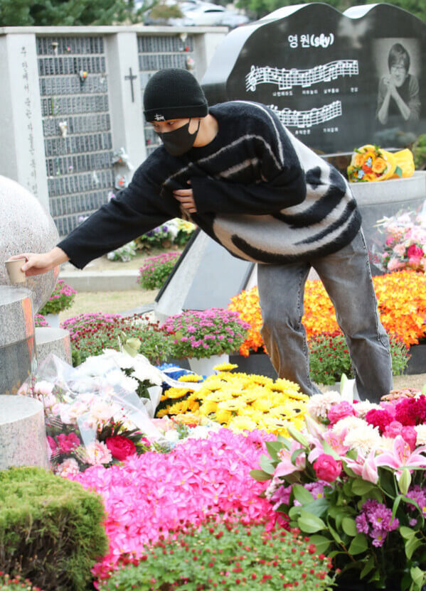 지난 10월 2일 국민 배우 최진실의 14주기 추모행사가 있었습니다. 이날 최진실의 묘소에서는 고인의 가장 친한 친구였던 메이크업 아티스트 조성아가 보내준 꽃도 있어 관심을 끌었는데요. 이 자리에 최진실의 아들이자 가수로 활동중인 최환희(지플랫)가 외할머니와 함께 묘소를 찾아 그리움을 표했습니다.
